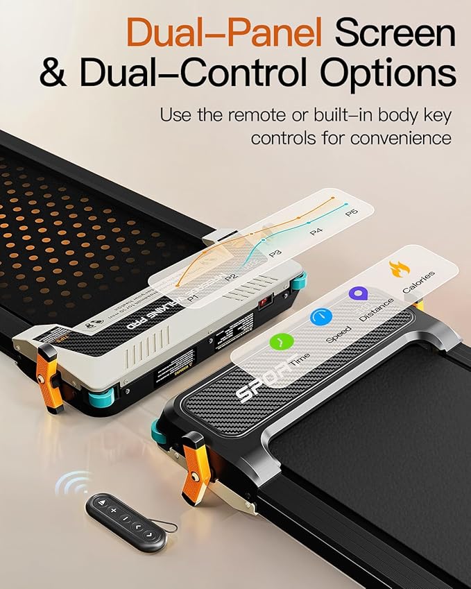 • 【Dual-Panel Screen& Dual-Control Options】Our walking pad boasts both on-machine buttons and a remote control for easy operation, paired with dual screens showing treadmill and massage settings, enhancing your fitness experience.