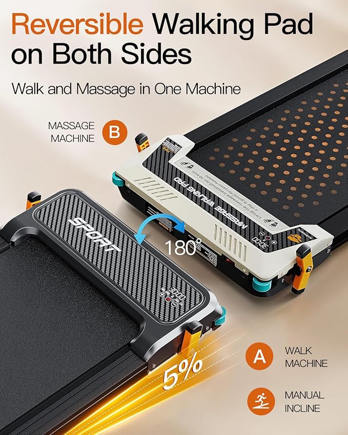 FUNRAY Versatile Walking Pad Treadmill with Incline - Dual-Sided Under Desk Treadmill with Foot Massage,2 in 1 Walking Machine for Home/Office with 330LBS Weight Capacity