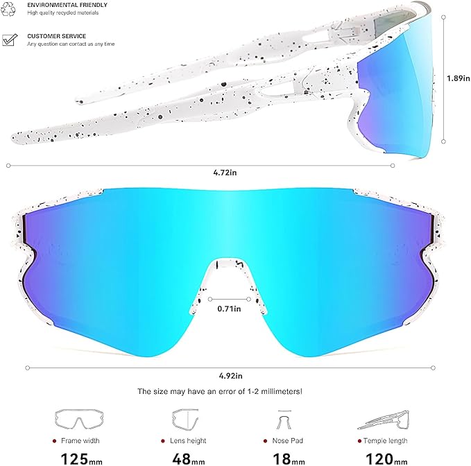 • KIDS SPORTS SUNGLASSES - Weighing only 20 grams, these baseball glasses are ideal for various outdoor activities such as baseball, cycling, fishing, softball, golf, hiking, and running. Their durable and comfortable Wrap-around design makes them the perfect companion for your child's outdoor adventures.
