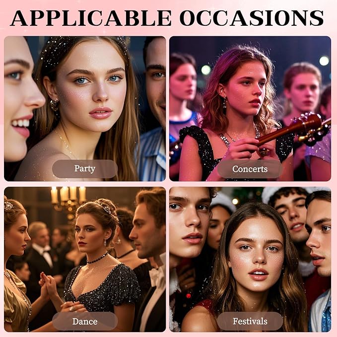 • Multi-Purpose Glitter Spray: Our body glitter spray is made of glitter particles, delivering a charming shimmer effect. You can spray it on your body, hair, face, skin, and even clothes. It will make you the center of attention under the lights at parties or nightclubs