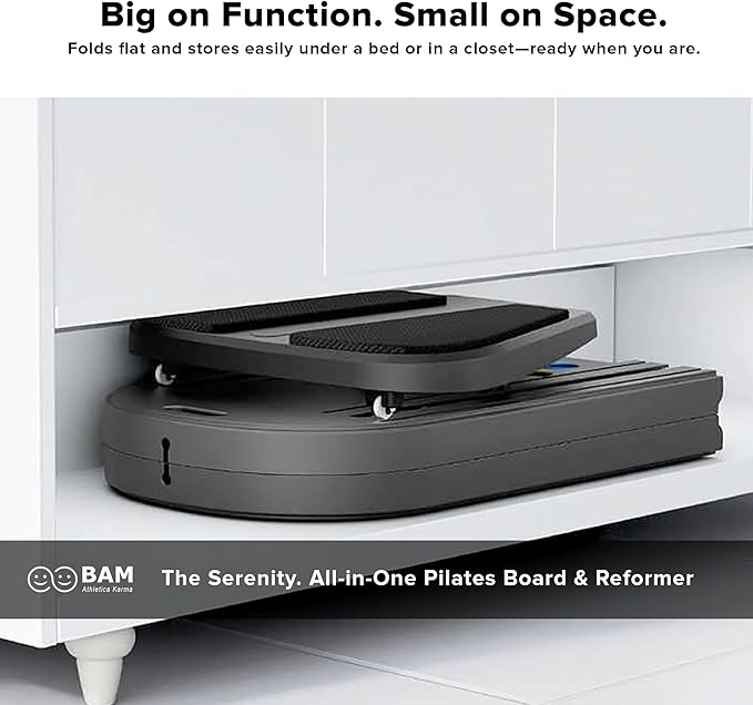 | Move with intention at your own pace using BAM's compact pilates reformer machine built for daily low-impact routines at home. The Serenity Pilates board is wide non-slip offering a smooth resistance glide for joint-safe toning, flexibility & balance training—ideal for beginners, seniors, and active-recovery days. Strengthen the core, legs, arms & posture with studio-style control pilates at home.