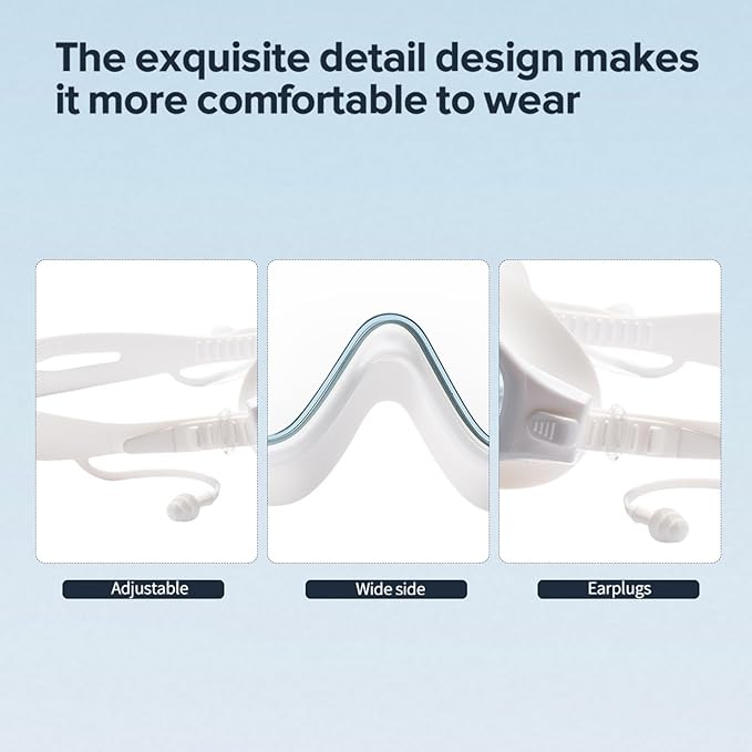 • 【Thoughtful Accessories】Our swim goggles with ear plugs and nose clip, Combining convenience with waterproofing, allowing you to swim more freely in the water