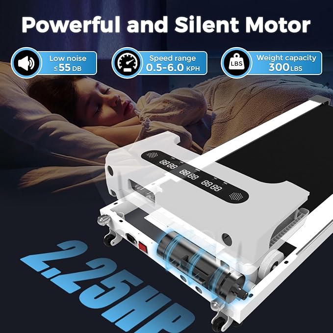 • P01-P12 Programs and Easy to Move: Start the walking pad treadmill and enter the "P" program directly, accelerating fat burning through preset variable speed running programs. The built-in transport wheels make this under desk treadmill easy to move and store, saving space.
