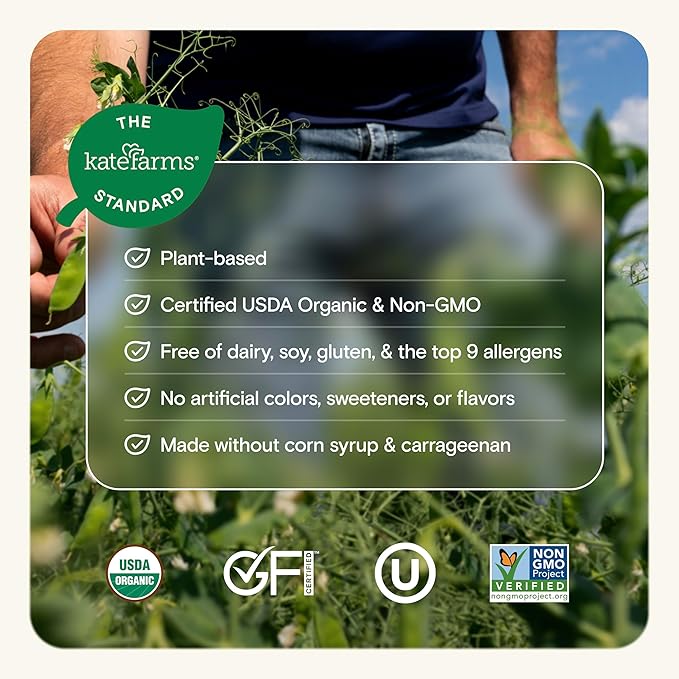 • Crafted to meet the Kate Farms Standard: Our promise for honest goodness. Every shake is plant-based, Certified USDA Organic, and Non-GMO Project Verified. It’s made without dairy, soy, gluten, or the top 9 common allergens, and contains no artificial colors, sweeteners, or flavors. We also leave out corn syrup and carrageenan—because real nutrition should be simple and trusted.