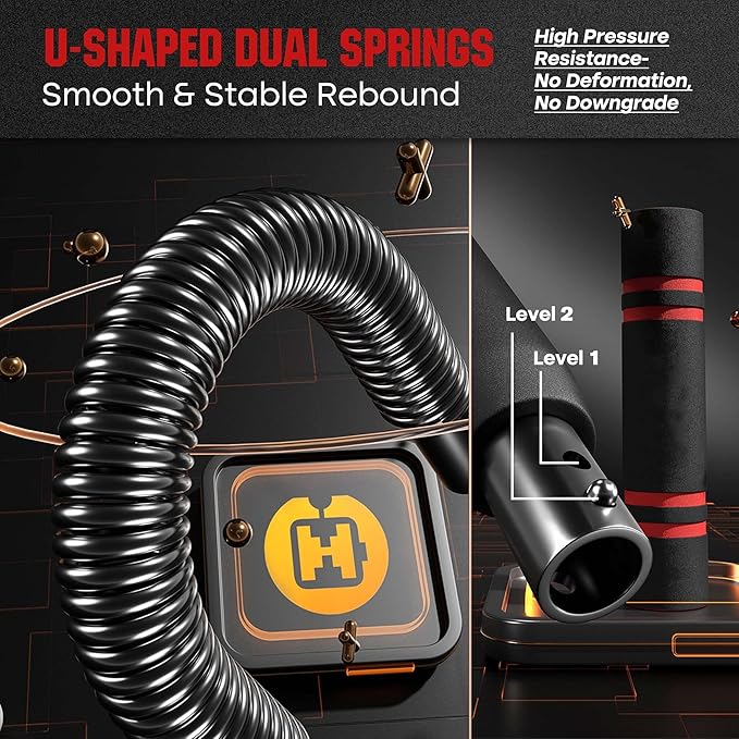 • 【Adjustable Resistance】Built for both beginners and pros, this arm trainer features adjustable resistance from 40 to 100 lbs. Easily change the resistance to suit your fitness level or progression goals, this adjustable spring workout bar is ideal for personal strength training.