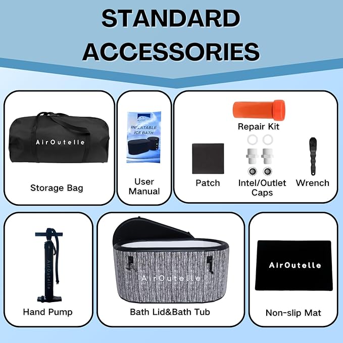 • COMPATIBLE WITH CHILLERS: The Airoutelle cold plunge tub can easily connect to a water chiller (not included). This setup automatically maintains the ideal cold water temperature, thus cutting ice costs. And it is also compatible with water filters, compressors, and physical therapy devices (not included). Both using a chiller and adding ice are effective ways to keep the water cold.
