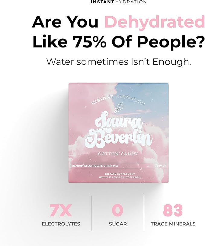 Instant Hydration Electrolytes Powder Packets - Cotton Candy Drink Mix - Zero Sugar - Keto, Vegan, Gluten-Free, Non-GMO - Boost Recovery, Brain Health, Muscle & Tissue Support- 30 Sticks