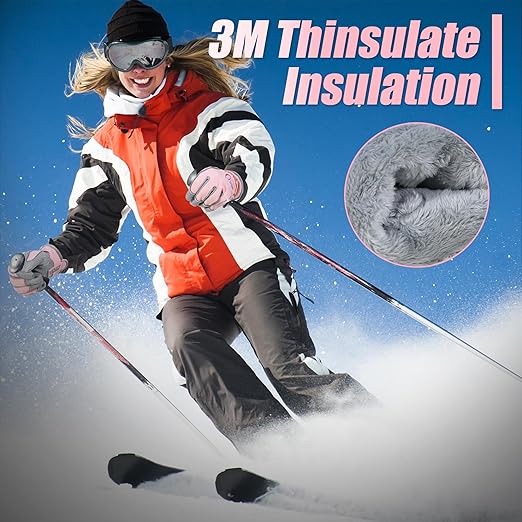 HANDLANDY Winter Insulated Work Gloves, 3M Thinsulate Thermal Water-Resistant Gloves for Men Women Touch Screen, Warm Ski Snowboard Cold Weather Gloves (Pink Grey, Large)