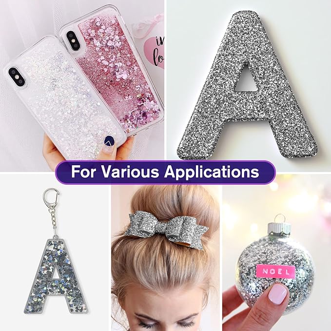 • Great Glitter for Crafts: Premium multi-purpose glitter for resin art, candles, party ornaments, glitter tumbler, glitter keychains, jewelry, decorations for holiday, as well as various unique handmade artworks.