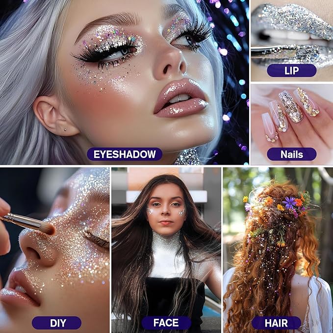 • Ideal Glitter for Beauty : Use as nail glitter powder, body glitter, eye shadow glitter, face glitter, hair glitter, friendly to face and body, create natural shiny makeup safely.