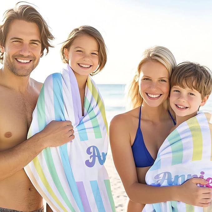 • Perfect Gift for Water Lovers: Whether it's for birthdays, summer vacations, Easter,Mother's Day,or just because, this personalized beach towel makes a delightful gift for swimmers, beach lovers, and sunshine chasers. Surprise your kids, partner, families, or friends with a unique and practical present they'll use all season long