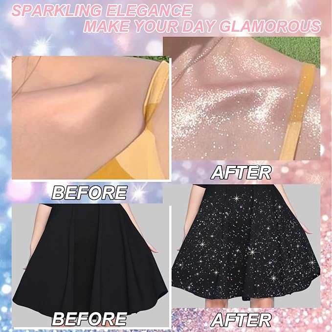 • 【Healthy Ingredients】Made with skin-friendly, non-toxic ingredients, this glitter spray is safe for women and girls. The lightweight, high-shine formula won’t irritate skin or hair. Plus, it’s cruelty-free and eco-conscious, so you can sparkle guilt-free!
