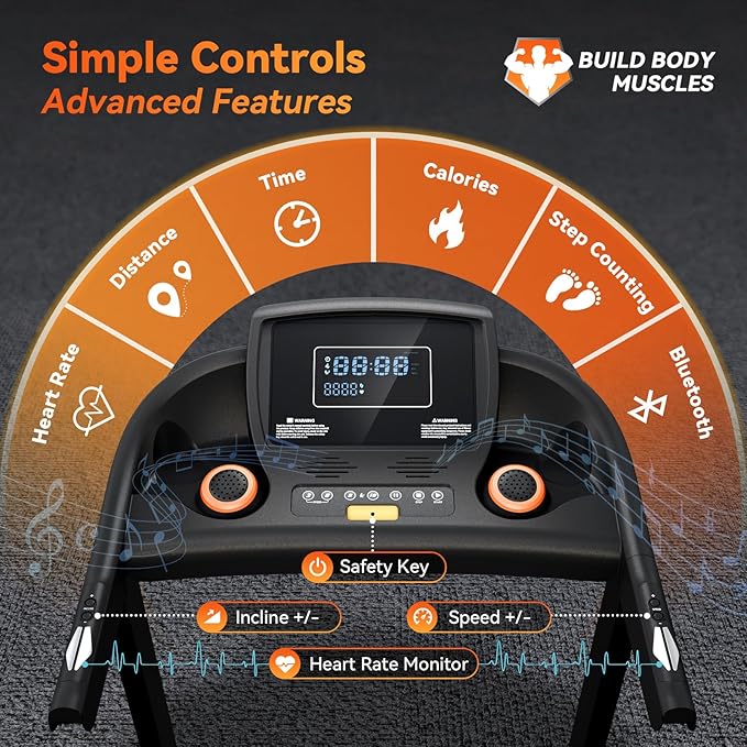 • 【Heart Rate Monitoring & Bluetooth APP】 Pairs quickly and maintains stable connection with fitness apps. Syncs seamlessly with major platforms to provide real-time heart rate tracking, optimizing HIIT and endurance training performance. Enjoy one-tap Bluetooth pairing and immersive music for your run on this walking pad treadmill.
