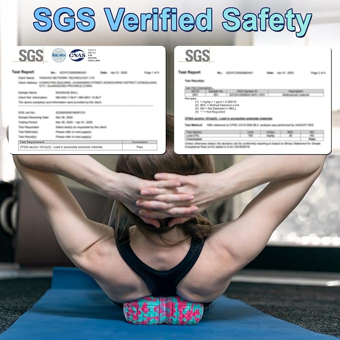 • 【Safe & Premium Material】Made from premium EVA material (non-recycled, PVC-free), our Lacrosse Ball offers the ideal balance of firmness—Firmer than a tennis ball but gentler than a golf ball. Independent testing by SGS confirms lead content compliance with U.S. CPSIA Section 101(a)(2), ensuring safe use