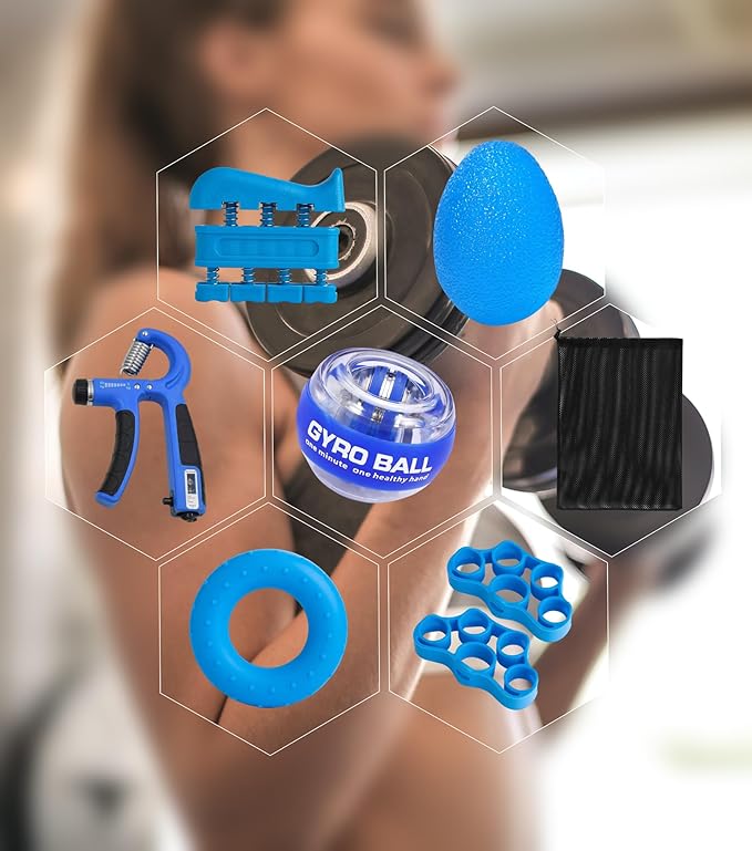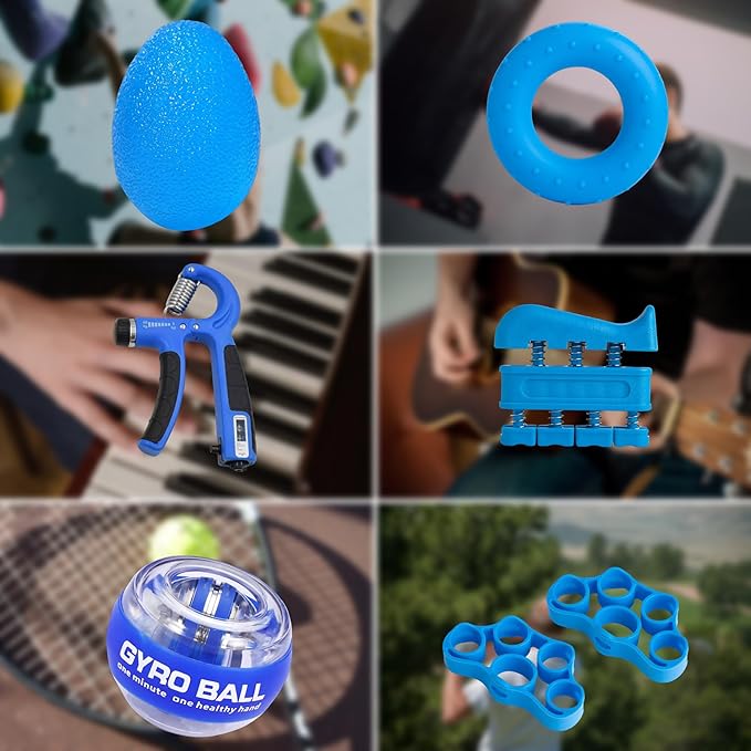 • [Hand Grip Strengthener Workout Kit (8 Pack)]: Forearm Grip Adjustable Resistance Hand Gripper, Finger Exerciser, Finger Stretcher, Gyro Ball,Grip Ring & Stress Relief Grip Ball for Athletes.