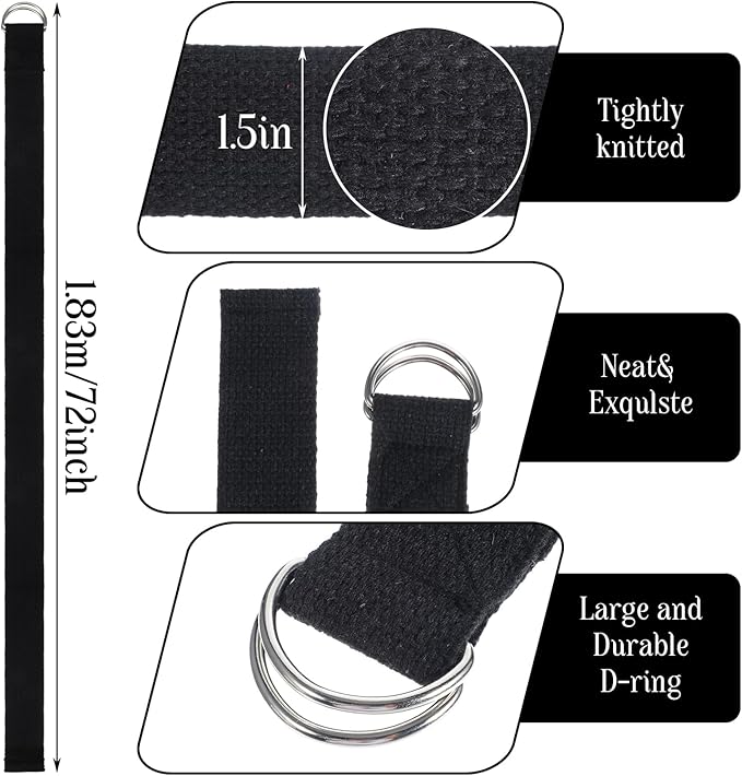 • 【Complete Fitness Set】This 12-pack includes black 6 ft yoga straps with D-ring buckles. Sufficient for group classes or personal use, the cotton exercise bands support consistent gym, studio, or home flexibility training routines