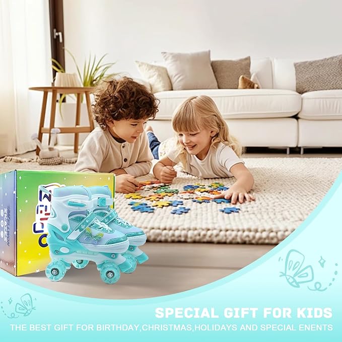 Kids Roller Skates for Girls-Outdoor 4 Size Adjustable Butterfly Quad Rollerskates for Indoor Ages 3-12 Years Beginners Children's Birthday Gift with Light Up Wheels patines para niñas Indoor