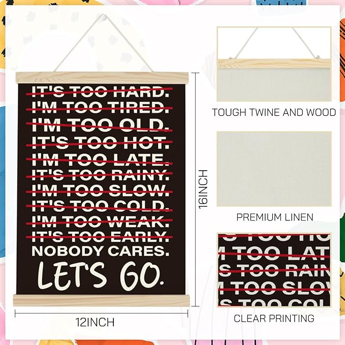 • 【Premium Quality Materials】Crafted from high-quality linen canvas, our poster features fade-resistant ink that ensures your motivational message lasts. The durable wooden frame with a convenient hanging rope makes it easy to display without any hassle—lightweight yet robust!