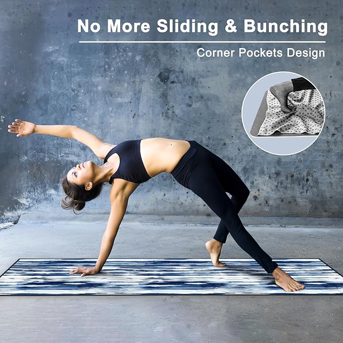 • Corner Pockets Design: Features 4 corner pockets on the backside, the non slip yoga mat towel helps secure and hold onto the mat firmly. This allows you to focus your mind, body and breath on the yoga practice, without worrying about bunching.