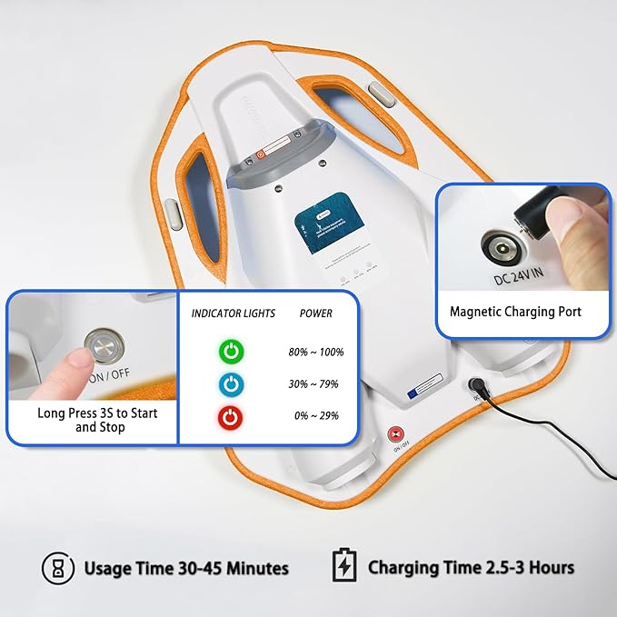 • Large-capacity battery: Electric swimming Pool Float has a built-in 24V/4.6Ah battery, with a comprehensive battery life of up to 45 minutes and a charging time of only 2.5-3 hours.