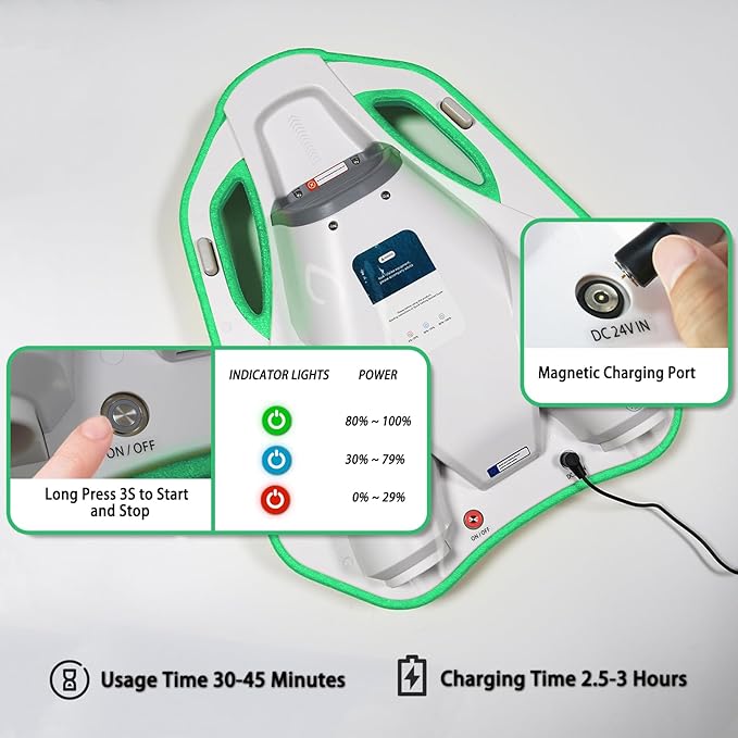 • Large-capacity battery: Electric swimming Pool Float has a built-in 24V/4.6Ah battery, with a comprehensive battery life of up to 45 minutes and a charging time of only 2.5-3 hours.