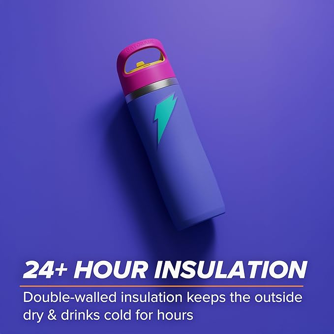 • Gatorade Stainless Steel Overtime with 24+ Hour insulation: Double-walled insulation keeps the outside dry & drinks cold for hours