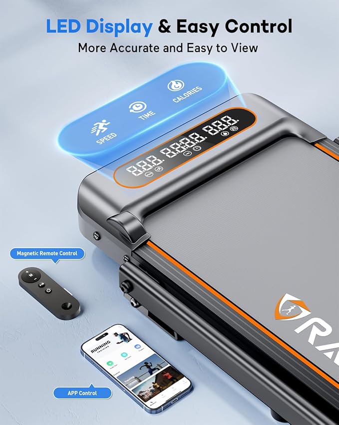 • Smart Control & LED Display: The bright LED screen and fitness app track key metrics - speed, calories, time, and distance - while letting you customize workouts and connect socially. Easily adjust speed anytime with the included remote for seamless workouts.