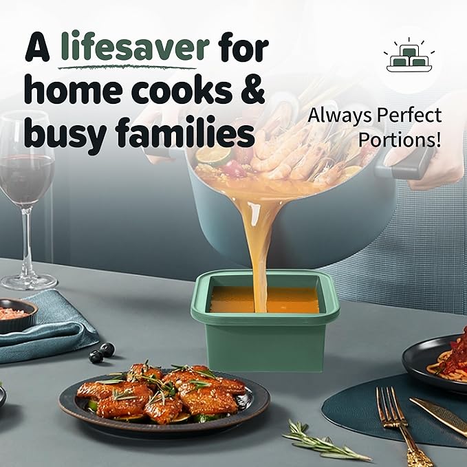 • VERSATILE & CONVENIENT FOR ANY KITCHEN TASK Use them for: Freezing homemade soups, sauces, and broths Storing baby food and portioning snacks Baking (up to 415°F without the lid) Making ice cubes, chocolates, and more! Dishwasher-safe for quick and easy cleaning, they save you time in the kitchen.