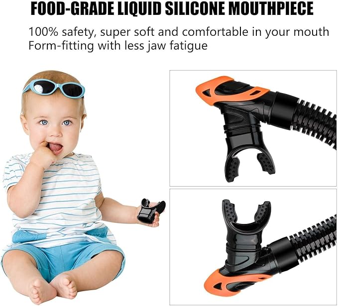 • Advanced top dry valve and splash guard: Aegend Dry snorkel profiled “paddle” dry top automatically closes when submerged, not allowing water entry. Even waves crash overhead, the splash-guard will prevent water from coming into the snorkel. Unlike the float ball valve which gets lodged easily by small sands or kinds of stuff, our new design valve won't be stuck, which give you comfortably breath.