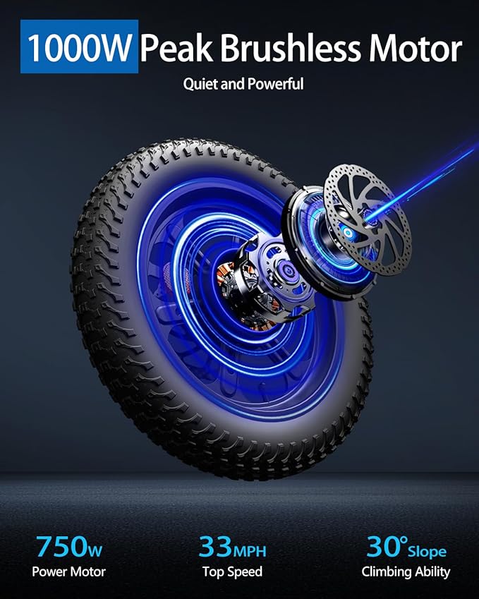 • Powerful Performance: E bike for adults equipped with peak 1000W high-speed brushless motor, our folding bicycles for adults commuter e-bike can reach a top speed of 30 mph and climb 25 degree inclines with ease