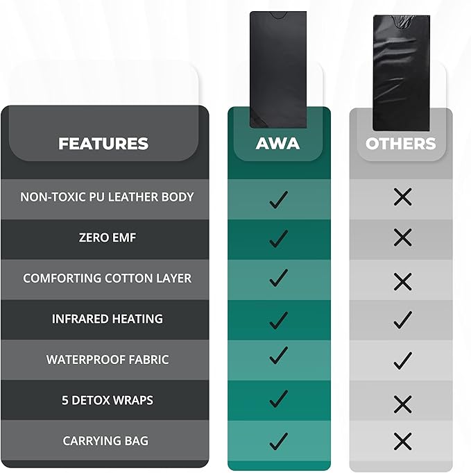 • Special Feature : 100% Waterproof - Personal Infrared Sauna Blanket, Durable Tear Resitant and 110 Volt Corded Electric, Non-Toxic and Fired Retardant Material, Odor Resistant Personal Sauna, Zero EMF 100% Waterproof - Personal Infrared Sauna Blanket, Durable Tear Resitant and 110 Volt Corded Electric, Non-Toxic and Fired Retardant Material, Odor Resistant Perso… See more