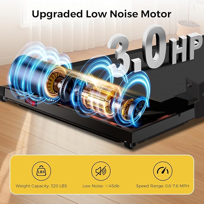 • 【3.0HP Ultra-Quiet Running & 320 lbs Capacity】Powered by a robust 3.0HP silent running, this walking pad treadmill operates whisper-quiet for home use. Its heavy-duty frame supports up to 320 lbs, paired with 8 silicone shock absorbers and dual rubber layers to reduce joint strain—ideal for treadmills for home small spaces