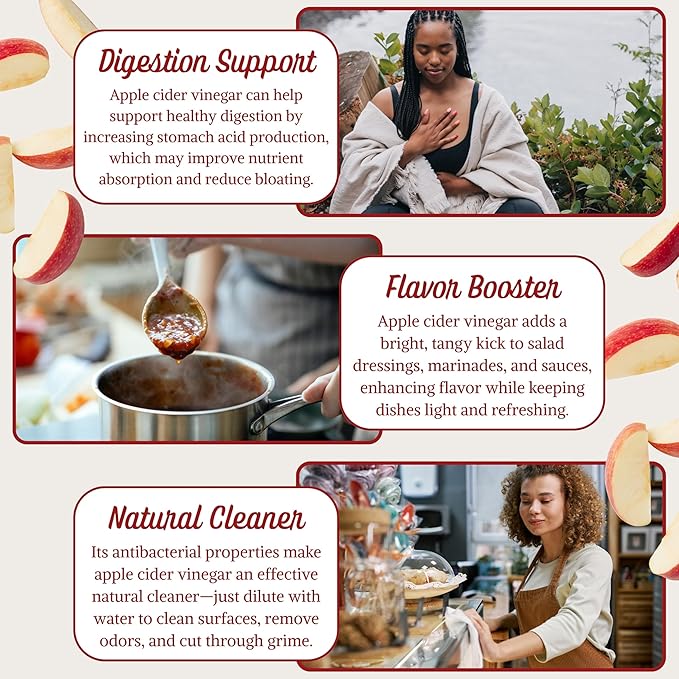 • Contains “The Mother” – Packed with natural probiotics, enzymes, and beneficial bacteria to support gut health, digestion, and immune function. Raw, unfiltered, and unpasteurized for maximum wellness benefits.