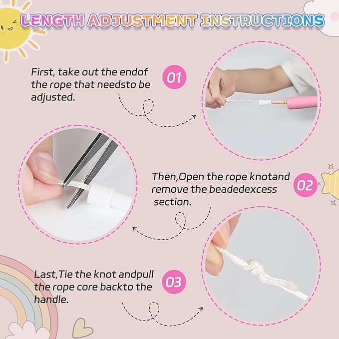 • 👧【Adjustable Rope】The length can be adjusted according to your kid's height (suitable for aged 3-12), re-knot and cut off the tail with scissors. Small and human ergonomic design wooden handle designed for the size of children's hands, easy to hold and keep