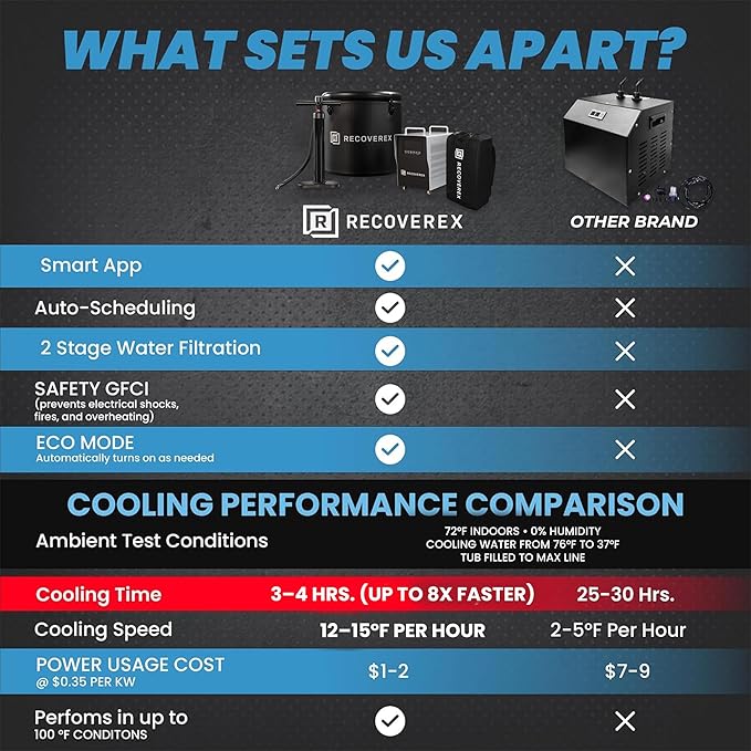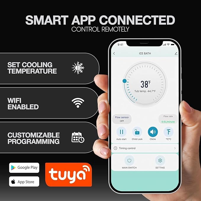 • SMART TEMPERATURE CONTROL – Maintain the perfect ice bath temperature remotely with this WiFi-enabled water chiller for cold plunge. Designed for AC100-130V, 60 Hz power sources, it delivers precise cooling for an optimal cold plunge experience. Using incompatible voltages may cause damage and void the warranty.