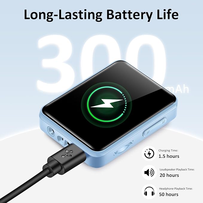 • 【Long-lasting battery life】 Built-in large-capacity battery, it can be used for a long time on a single charge, only 1.5 hours to fully charge, 20 hours with headphones and 4 hours with speakers. Say goodbye to the worry of mobile phone power consumption and focus on enjoying pure music time