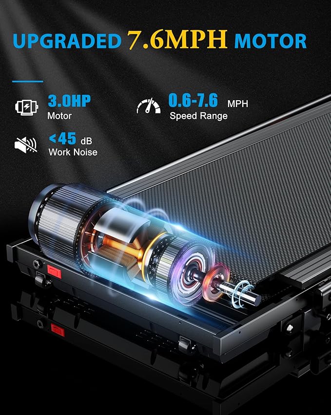 • 【3.0HP Peak Stronger Motor】The foldable treadmill with handrail bar features a powerful 2.5HP/3.0HP peak motor with speeds from 0.6 to 7.8 MPH and a 340 lbs capacity, meeting the training needs of every family member for walking and running