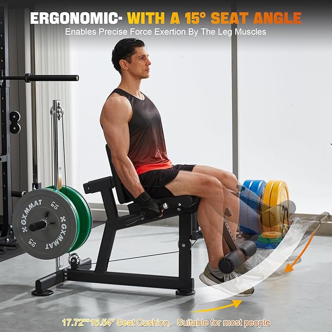 • 【Truly Commercial-Grade Professional Leg Extension Machine】The unique cable and aluminum pulley system offers consistent 1:1 resistance throughout the entire movement, differing from traditional lever-operated machines and promoting stronger and clearer muscle growth. The aluminum pulleys provide a smooth experience during seated leg extensions and leg curls. Unleash the beast with the GXMMAT Leg Exercise Machine.