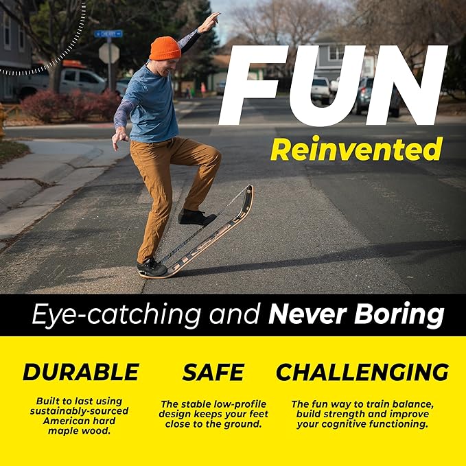 • SAFE FOR ALL AGES & SKILL LEVELS: Designed with a stable, low-profile slackline board system, this wooden balance board keeps you close to the ground for safer training. With no metal or moving parts, it's an ideal kids balance board and perfect for adults in any home workout routine.