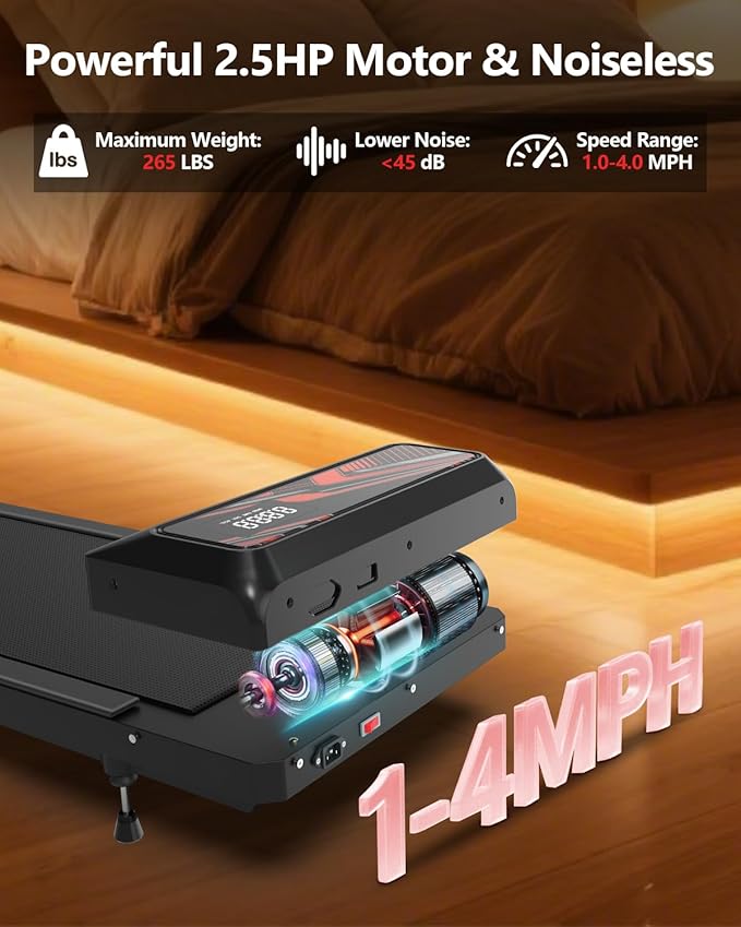 • 【Silent Operation(<45dB)】This HCOIW mini treadmill packs a 2.5HP powerhouse that runs quieter than a library (<45dB). Cruise from a chill walk (1 MPH) to a solid jog (3MPH) without waking the neighbors. Holds up to 265lbs -You can switch between walking and running freely, meeting all your needs from daily walking to jogging.