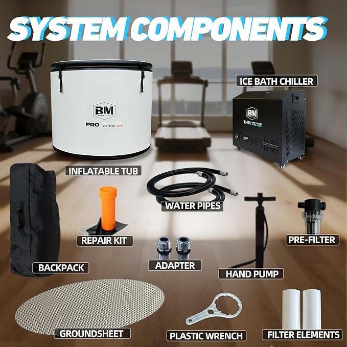• Complete Recovery System & Accessories: Includes a high‑pressure pump, groundsheet, PTFE tape, piping, seals, wrench, adapter, quick connectors, plus a replaceable filter. Everything you need for fast setup, ongoing maintenance, and a seamless cold‑or‑warm plunge experience
