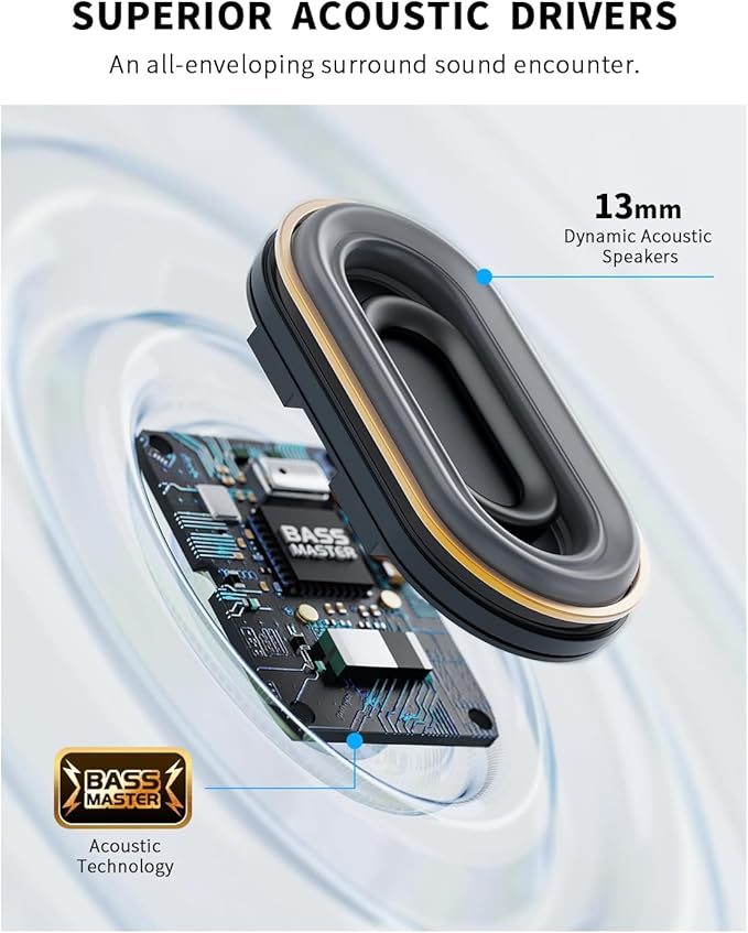 • POWERFUL STEREO SOUND & CLEAR CALLS - These wireless headphones feature a 13mm precision Hi-Fi driver and the"Bass Master" technology designed by CXK, providing rich and immersive sound quality that enables you to distinguish the subtleties in music. The excellent restoration of musical instruments and vocals, along with precise voice capture, ensures clear communication. The CXK Bluetooth bone conduction earbuds allow you to enjoy smooth calls, making the conversation as natural and fluent as a face-to-face chat