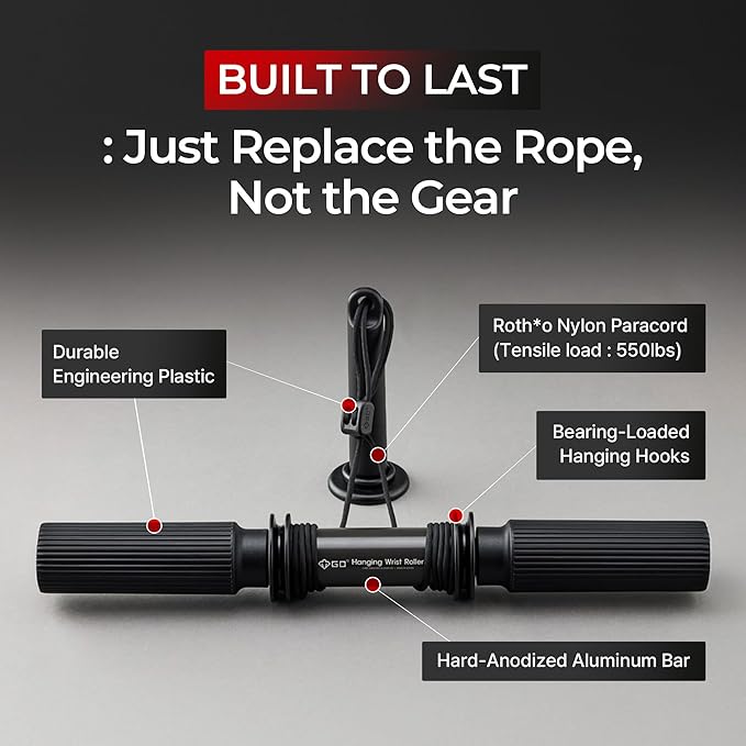 • 【Forearm Trainer & Grip Strengthener in One】 Build stronger forearms, wrists, and grip power with the GD Hanging Wrist Roller PRO. This versatile forearm trainer doubles as a grip strengthener, ideal for athletes, weightlifters, climbers, and arm wrestling training.
