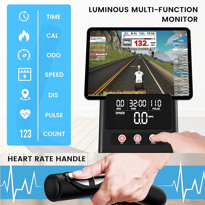 • 📊【Monitor Progress with Every Pedal】 Stay motivated with real-time tracking on the clear LCD monitor of this recumbent exercise bike. Monitor your speed, time, distance, calories, odometer, and heart rate with ease. Integrated pulse sensors on the handlebars provide accurate heart rate readings—giving you full control over your exercise bike sessions. Whether for weight loss, rehab, or daily movement, you'll stay on track every step of the way.