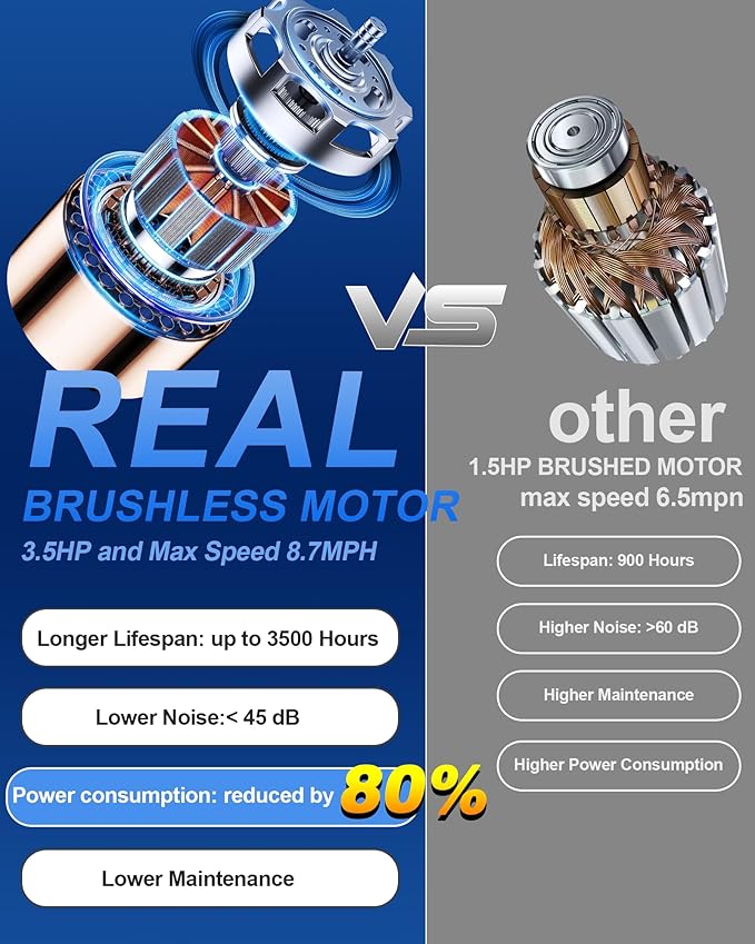 • 【3.5HP Real Brushless Motor】3.5 HP pro motor supports a maximum speed of 8.7 miles/hour to meet your different exercise needs, such as slow walking and relaxation during work, daily jogging fitness, professional running training, and (15% slope) climbing experience