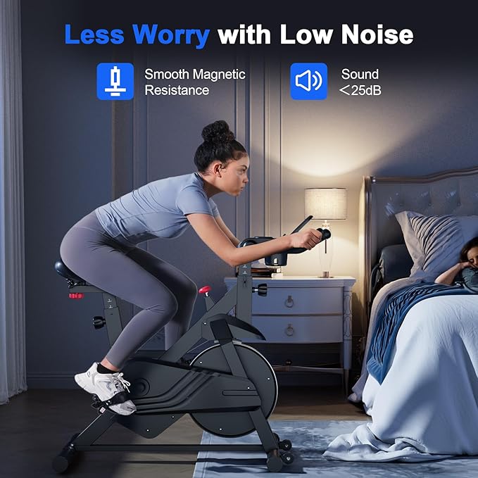 • 【Easy to Assemble】The design of this spin bike is very easy to assemble and it can be installed in no more than 20 minutes. It is equipped with built-in wheels at the bottom and can be easily moved from one room to another. Whether you have a dedicated fitness area or need to store after each use, this bicycle is the best choice
