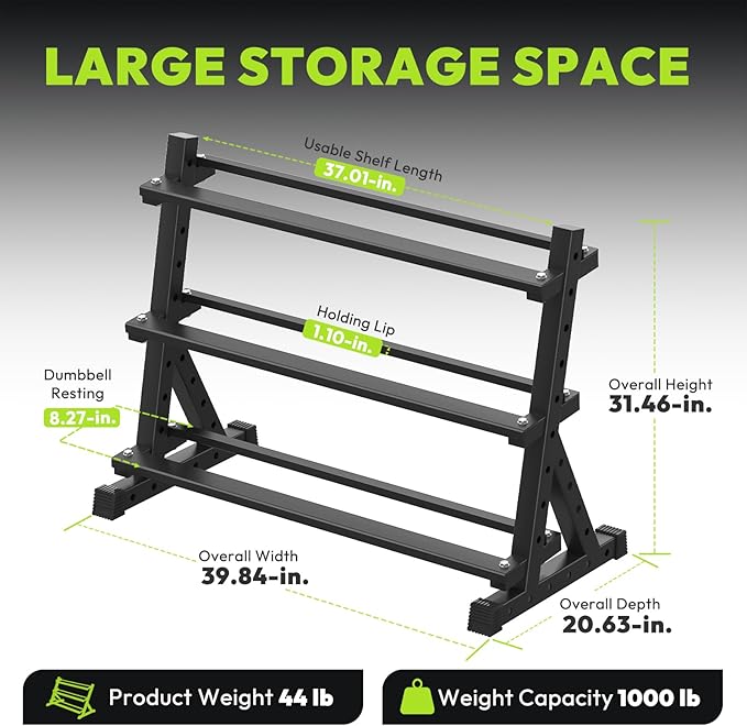 • SPACE-SAVING SOLUTION: The heavy-duty rack maintains a compact footprint while securely holding all dumbbell weights, keeping your workout area tidy and equipment easily accessible.