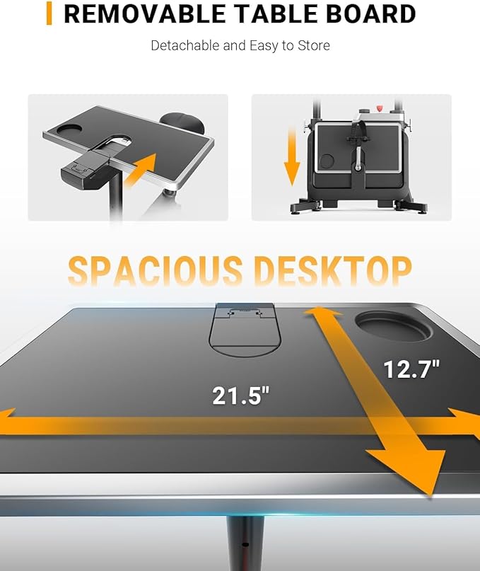 • 【Space-Saving Foldable Design】Compact design of this exercise bike with desk occupies just 2.7 square feet (27.8“ x 18.7” x 30.7") when stored. It fits seamlessly into apartments, offices, or tight corners. Equipped with removable transport wheels for effortless rolling and storage.