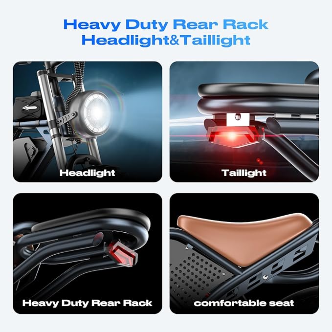 • 【EXTREME 1200W POWER & 65-MILE RANGE】Dominate any terrain with the massive 1200W high-speed brushless motor, reaching thrilling speeds up to 32MPH. The colossal 48V 30Ah battery system delivers an unmatched 65-mile range, built for the most demanding adventures and longest commutes.