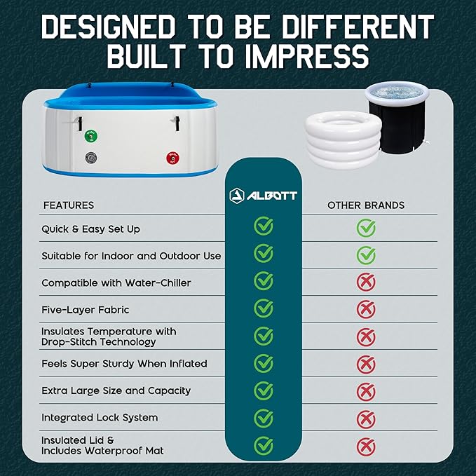 • Purpose-Built for User Satisfaction: The included insulated lid secures tightly over the ice plunge tub with 4 snap buttons, helping to maintain water temperature while keeping out dust and debris. And the non-slip mat ensures a safe, stable, and convenient cold plunge experience